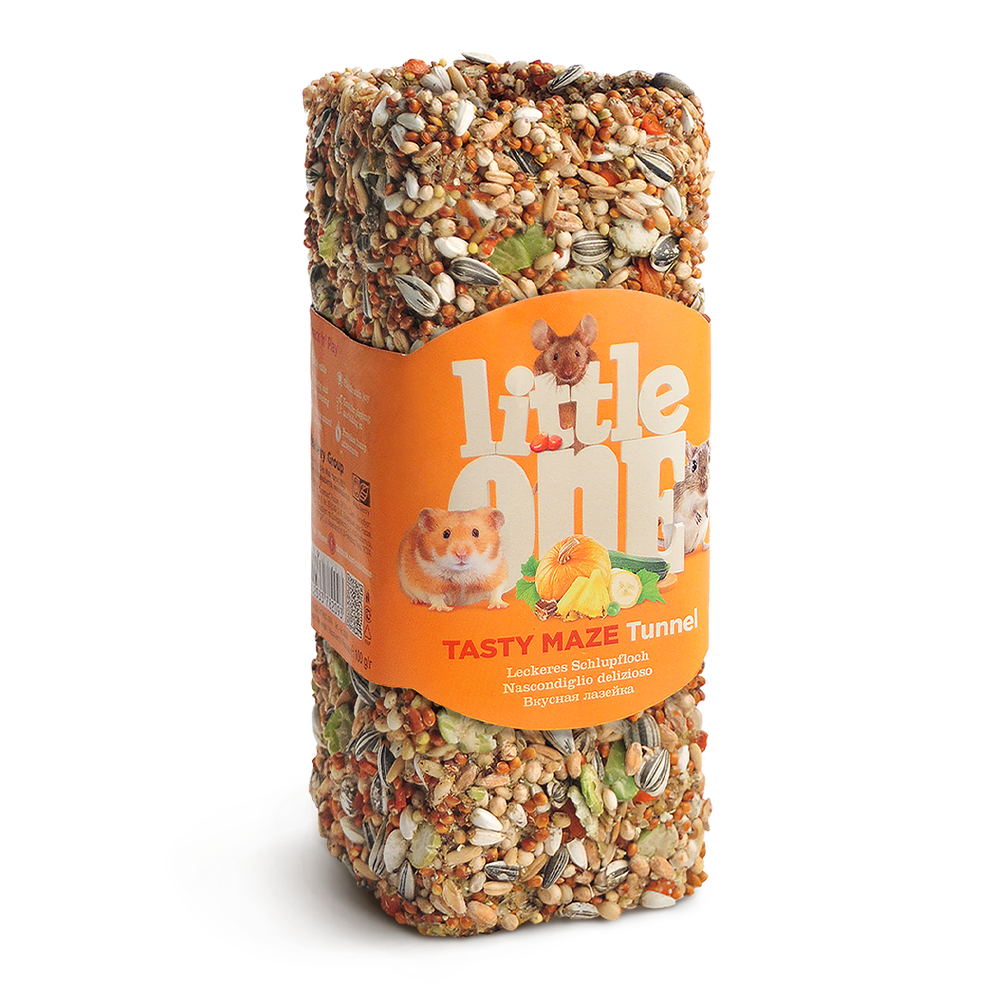 Little One “Tasty maze” tunnel will become a wonderful toy. Pets will find that crispy corn flakes, pieces of carrots and grains taste so good and the tunnel-like shape of the toy will keep the little friend busy for a long time. For hamsters, mice and gerbils. Complementary feed.